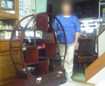 あたしのホームページでは以前から楽天のアフィリエイトをやってまして、そのポイントが少し溜ったので、以前から欲しかった中国風違い棚(飾り棚)を買いました。(こういうのって「買う」って言うのかしら?)