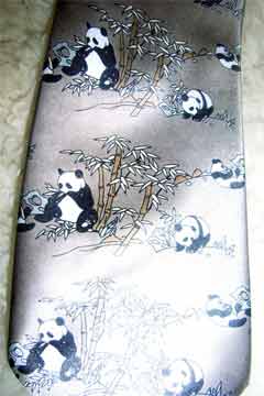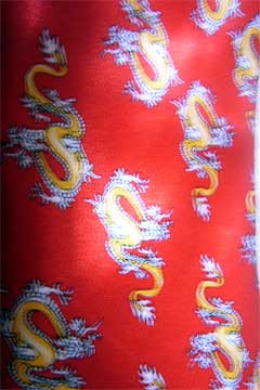どちらも豫園の市場で買いました。なんと定価10元です。もうちょっとましなモノだと20元というのもありましたが、豫園周辺の土産物屋では、だい たいこの手のネクタイが1本10元で売られていました。日本円なら140円ですね。この半年、仕事でも締めているので、もう元を取ったどころの話ではあり ません。パンダと龍という、いかにも中国らしいのではないでしょうか? 色違いも何種類かありましたが、一番気に入ったこのタイプを選びました。