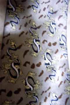 このダイアリーを始めた頃に書きましたが、昨年暮れに中国へ行きました。北京と上海・杭州です。いろいろなところへ行き、いろいろなものを買いまし たが、今まで買ったことのないものも買いました。それがネクタイです。今日は、それをご紹介いたします。(幻冬舎の『シャキット!』なんかを買ってしまっ たので、今回はファッションの話題を書いてみますね。)