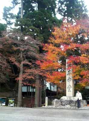 上記の写真の階段脇には、上のような「根本中堂」と大書された碑が建っていました。紅葉は、やや赤が強いですね。もう少し黄色も欲しいところです。