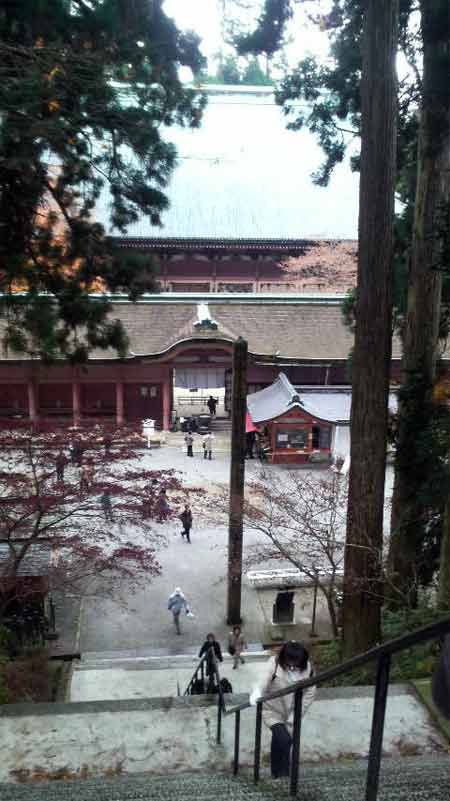 続きまして比叡山延暦寺。上の写真の階段を下りた左側、ちょうど屋根だけ見えていますが、これが根本中堂です。寺域が広いぶん、石山寺よりも空いている感じがしましたが、たぶん参詣客はこちらの方がはるかに多いはずです。