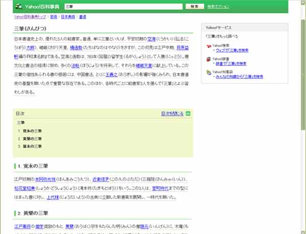 項目によって異なるのでしょうが、「黄檗宗」ではジャパンナレッジでは関連サイトや参考文献も載っていますが、Yahoo!の方には「関連項目」のリンク集しかないです。