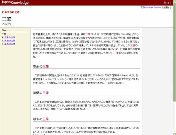 これも同様に、Yahoo!の方はリンクいろいろ貼ってあるのに、ジャパンナレッジは素っ気ないものです。