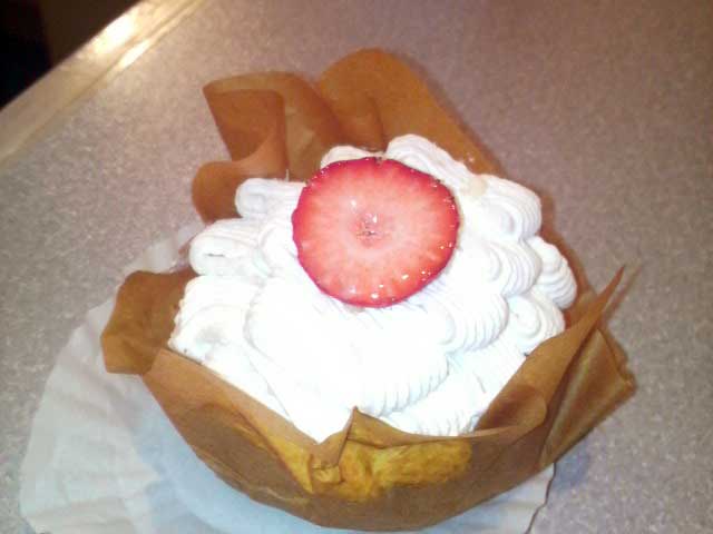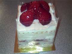 三つ目のこちらは京都では有名なスイーツショップ「マールブランシュ」の練乳のショートケーキです。こちらも京都の名店の名にふさわしい上品な味わいのケーキでした。