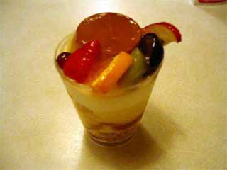 チェリーの下に紅茶味のクリームがなかなか本格的な味で美味しかったです。 二日目の今夜は、同じく阪急百貨店地下にあります「ミルフィーユ」のプリンパフェにしました。こちらはプリンの周りの果物が美味しかったです。