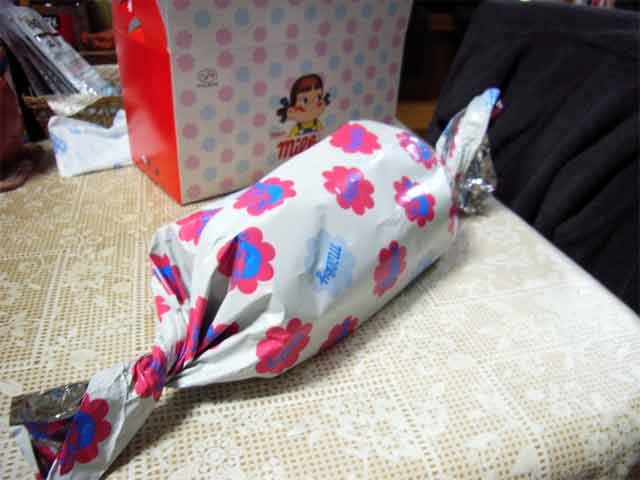 箱を開けると、これまた不二家らしいホイルに包まれた状態になっております。両サイドは軽く捩ってあるだけです。