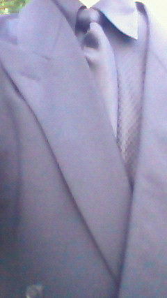 これが、その着替えの後のいでたちです。スーツとネクタイはそのままに、白いワイシャツを黒のシャツに取り替えました。なので、全身、真っ黒けになりました。