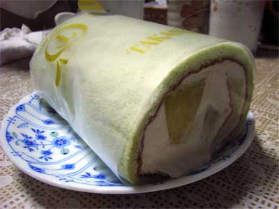 カットメロンがクリームの中に入っているのですが、切り方によってはメロンがあまり入っていないところに当たる可能性もあります。クリームはそれほど甘くなく、メロンはやや硬めのものでした。見た目は黄緑色で、粘土細工のような色をしていますが、メロンの香りが楽しめる、爽やか系のロールケーキでした。