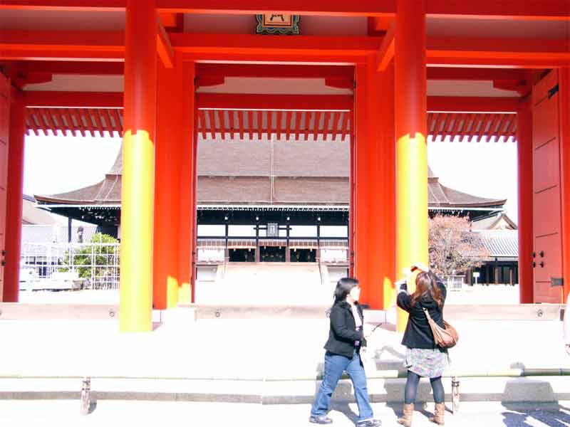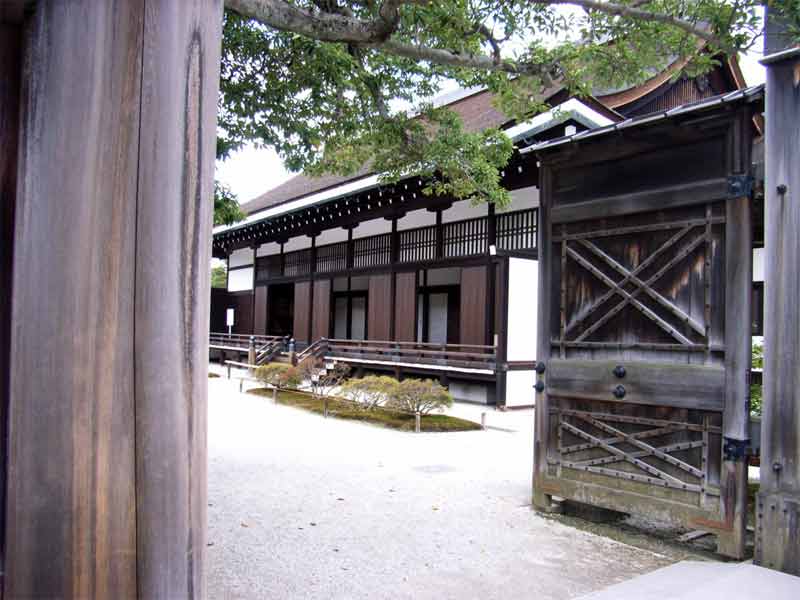 さらに回廊を巡って、見えてきたのは建春門、皇太子用の入り口だそうです。五行で言えば、東は春なので御所東側の門が建春門なのですが、東の方角というのは「東宮」という言葉もあるくらいで、中国でも皇太子用のものが多いですね。
