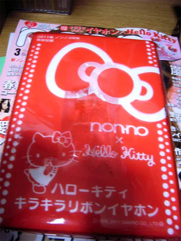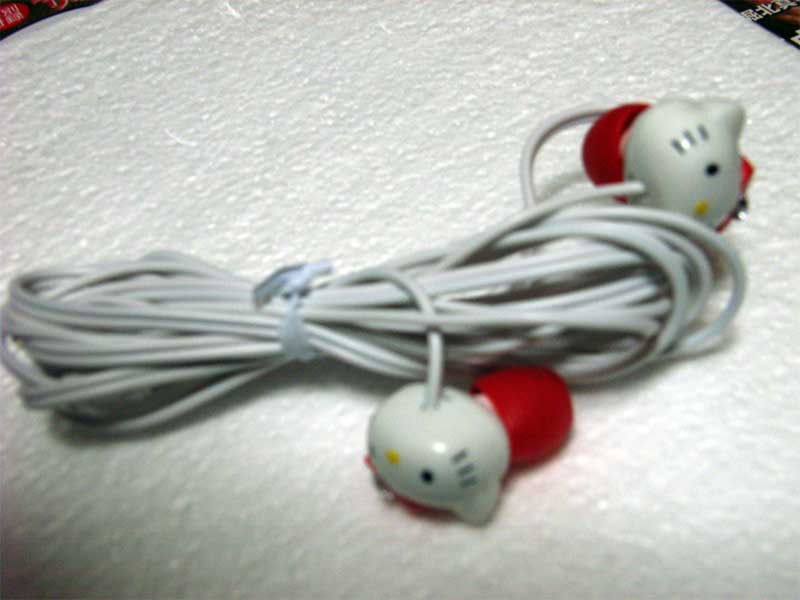 中味はこれです。ハローキティのイヤホンです。こんな小さなものに、わざわざあんな大きなパッケージをするとは、なんて環境に優しくないのでしょう(爆)。