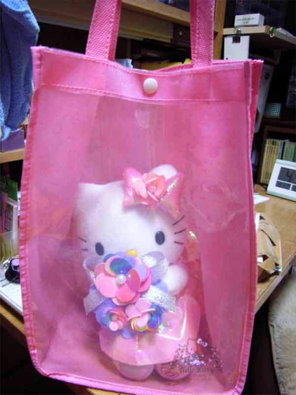 なんと、専用のバッグに入ったキティちゃんのぬいぐるみです。あたしがキティラーだということを知っていて、わざわざこんなプレゼントをくださるなんて、なんて素敵なお子様でしょう(笑)。