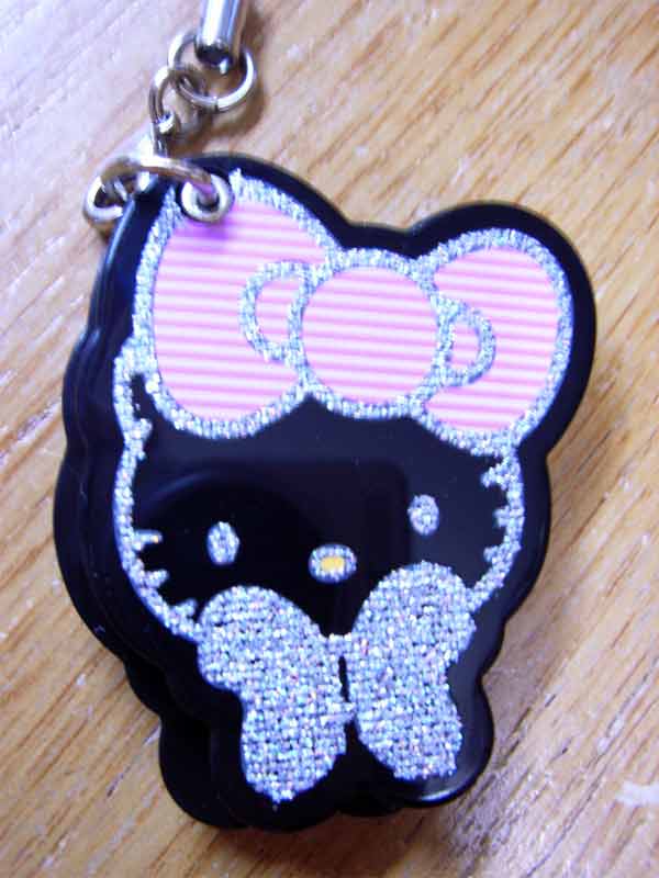 これはキティちゃんの部分がスライドできて、鏡が現われます。とは言っても、鏡は小さいので、顔全体は映りませんけど(爆)。