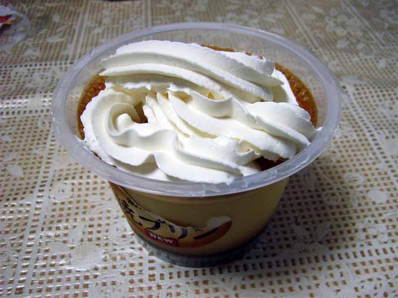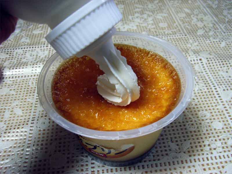 ホイップクリームを、プリンの表面が見えなくなるくらいデコレーションしたら完成です。
