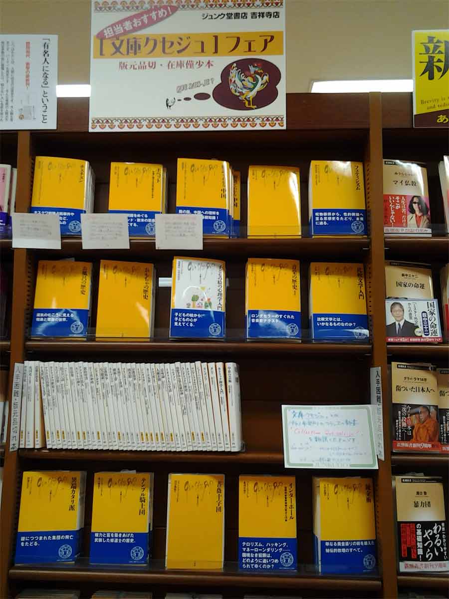 文庫クセジュフェアです。ジュンク堂書店吉祥寺店で開催中です。担当の方セレクトによるクセジュがズラリと並んでいます。