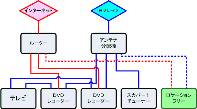 まずアンテナの分配機が足りません。このロケーションフリー・ベースステーションにもアンテナを繋がないとならないんですが、分配機の端子が足りません!