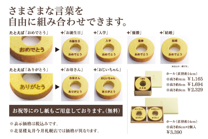 とまあ、そういうわけで妹のところの姪っ子や甥っ子には洋服やおもちゃ、本などを買ってやっていますが、妹にはふだん何もしてやっていないので、不憫に思った母に頼まれ、北菓楼のバウムクーヘンを焼き印入りで贈ってやりました。
