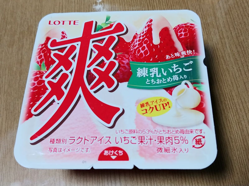 アイスと言えば、エッセルスーパーカップをまだ食べていないというのに、実は爽も買ってあるのです。「練乳いちご」味です。