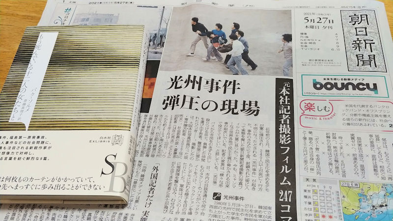 今日の朝日新聞夕刊です。大きく光州事件について書かれています。