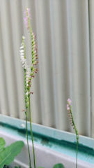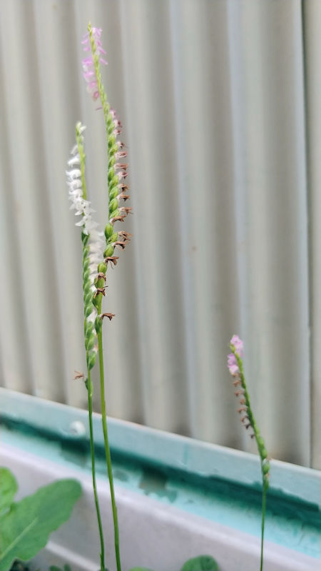 そして最後の写真ですが、このネジリバナって、見かけるのはほとんどがピンク色なのですが、時々白いものもありまして、わが家にも一本だけ白いのが咲いていました。