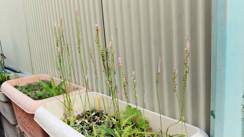 一般的には「ネジバナ」と呼ぶようですが、わが家では昔から母が「ネジリバナ」と呼んでいるこの花。わが家の庭先にたくさん咲いています。