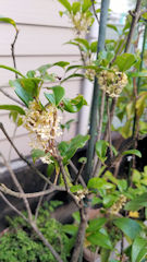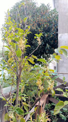 そしてこちらの写真は、ちょっとわかりにくいかも知れませんが、手前にあるのがギンモクセイ、奥に見えているのがキンモクセイです。