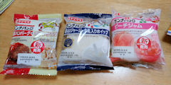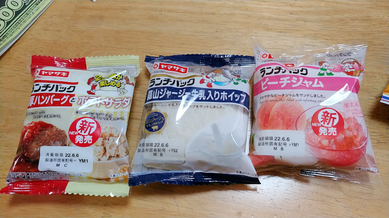近所のスーパーへ買い物に行ったら、ワゴンでヤマザキのランチパックが売られていました。オーソドックスな定番のフレーバーももちろん山積みになっていましたが、ちょっと変わったものも並んでいましたので、その中からご覧のようなフレーバーをチョイスしてみました。