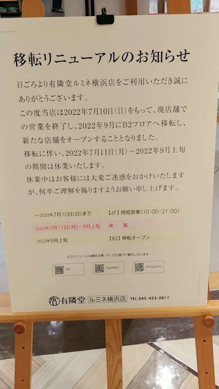横浜の駅ビル、ルミネに入っている有隣堂が来月上旬に閉店になります。