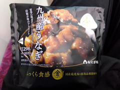どんなおにぎりかと言いますと、うなぎのタレがしみこんだご飯が、しっとりとした海苔に包まれています。そしてご飯の中にうなぎがひとかけら入っているのです。パッケージの写真ではてんこ盛りのうなぎですが、この写真に写っているうなぎの一つが入っています。