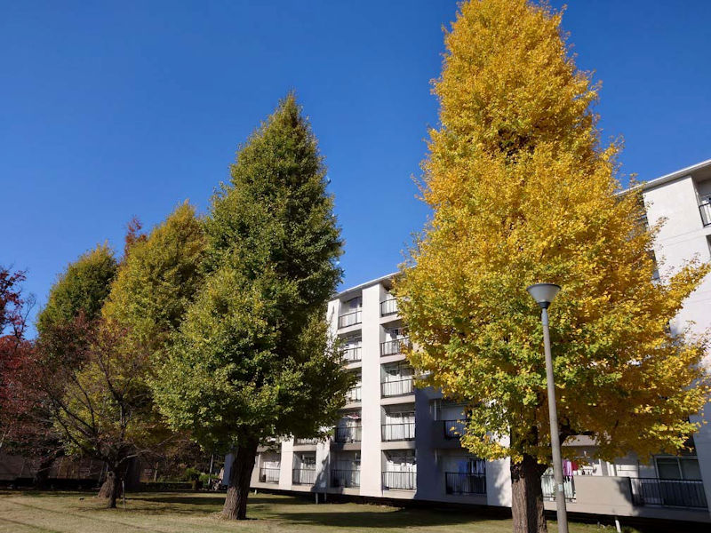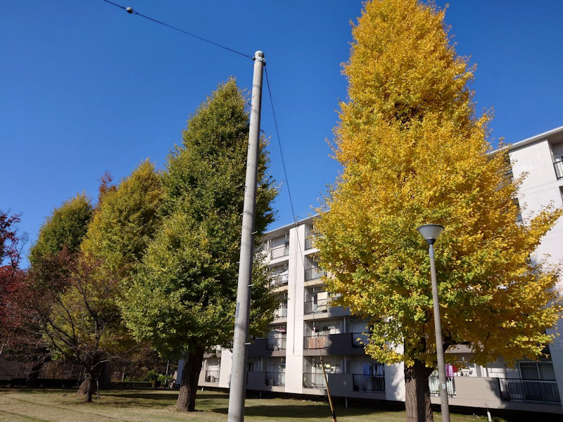 そして近所のイチョウも少しずつ色づいてきました。毎年のように写真を撮っているのですが、今年も取ってみました。しかし電柱や電線が邪魔です。せっかく晴れ渡った、きれいな青空なのに、電柱と電線が邪魔で写真を撮る気が少し失せます。