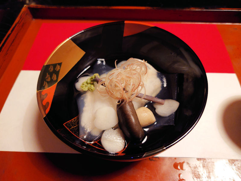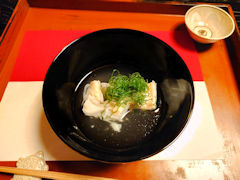 その次は椀盛です。非常に細かく切った茗荷がアクセントになっていて、とてもやさしい味でした。