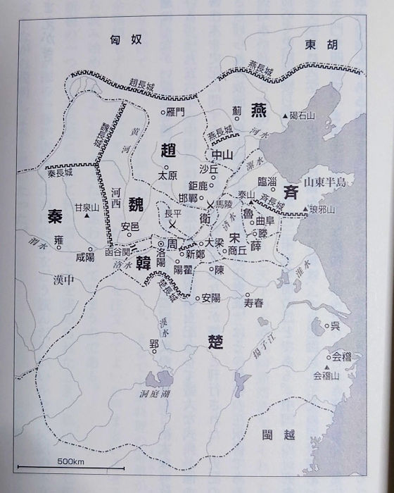 話は戻って『史記』ですが、巻頭に載せられている戦後時代の地図が新しくなっていました。二枚目の画像が旧版に載っていた地図で、三枚目の画像が今回の版に載っている地図です。ずいぶんとスッキリしてしまいましたね。