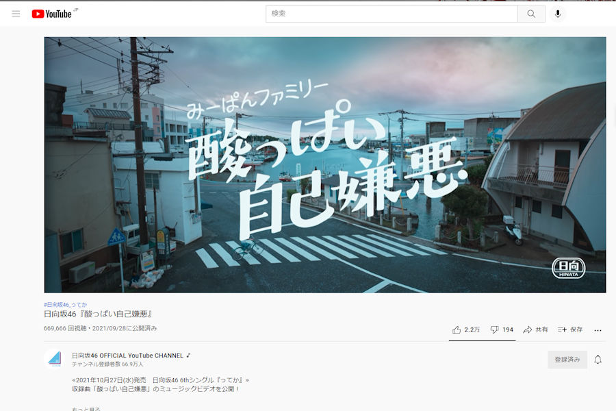 日向坂46亡いのユニット、みーぱんファミリーのMV「酸っぱい自己嫌悪」が好調なようです。