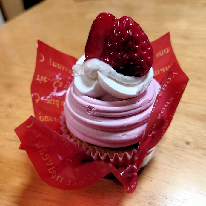 で、本日の仕事帰り、先日も買った、国分寺駅前の不二家でケーキを買ってしまいました。ホワイトチョコ生ケーキと苺畑のモンブランの二つです。モンブランは母へ、チョコ生ケーキはチョコをもらえなかった自分用です。