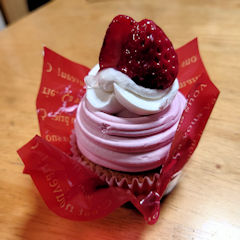 クリームも、マロンであれば黄色っぽいですが、これはイチゴなのでピンク色のクリームでデコレーションされています。