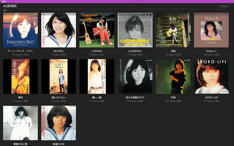 この時代は、ニューミュージックと呼ばれたジャンルも人気だった時代で、沢田聖子もそんな中の一人でした。これまでSpotifyやAWAなどの音楽配信サービスでは最近の曲やアルバムが少しだけ公開されていました。あたしのように古参のファンとしては、聞きまくっていた時代のアルバムも聴きたい、と思っていたのですが、なんと、このほど初期のアルバムが公開されたのです。
