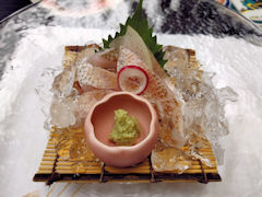 続いては、のど黒のお刺身です。のど黒って、たぶん母もあたしも初めて食べたのではないかと思います。見た目も食べた感じも鯛に近い感じでした。