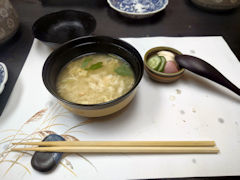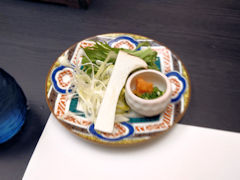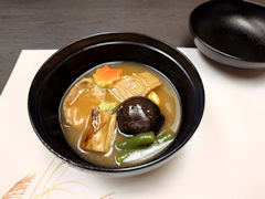 のどぐろが一段落したところで、加賀料理と言えばこれ、治部煮です。近江町市場で食べた昼食でも母のメニューにありましたが、お店によって同じ治部煮でも味が微妙に違うようです。確かに、帰京前の昼食でも治部煮が出ましたが、ここの治部煮とは味が少し違いました。いろいろ食べ比べるのも面白そうですね。