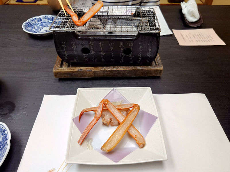 メニューは後半戦。前半戦の主役がのどぐろなら、後半の主役は蟹です。まずは炭火焼きです。