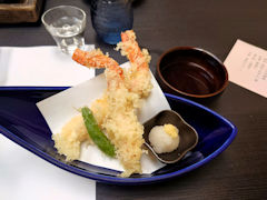 炭火焼きを堪能した後は天婦羅です。一見すると海老のようなのですが蟹足です。これがものすごくサクサクして、美味しい天婦羅でした。もう数本食べたくなるほどの美味しさでした。これもまた、あとはご飯と味噌汁があれば何も要らないような料理でした。
