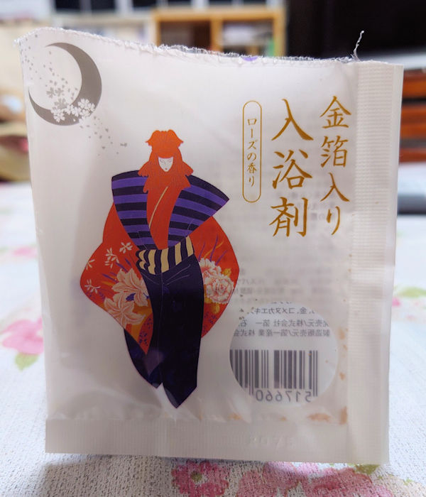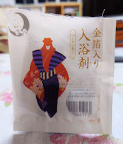 金箔が有名な金沢だから、金箔入りの入浴剤をお土産に買ってきたと言いたいのでしょ、と言われると半分は合っていて半分は間違っています。この入浴剤、買ったのではなくもらったものなのです。
