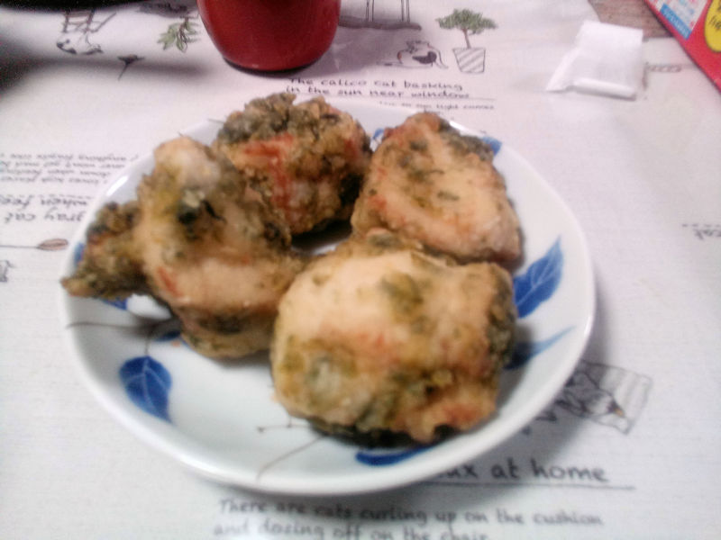 母と二つずついただきました。竜田揚げって、唐揚げとは違いますよね。作り方がどう異なるのか、あたしにはよくわかりませんが、美味しくいただきました。ところで竜田揚げって、どこの名物なのでしょう。
